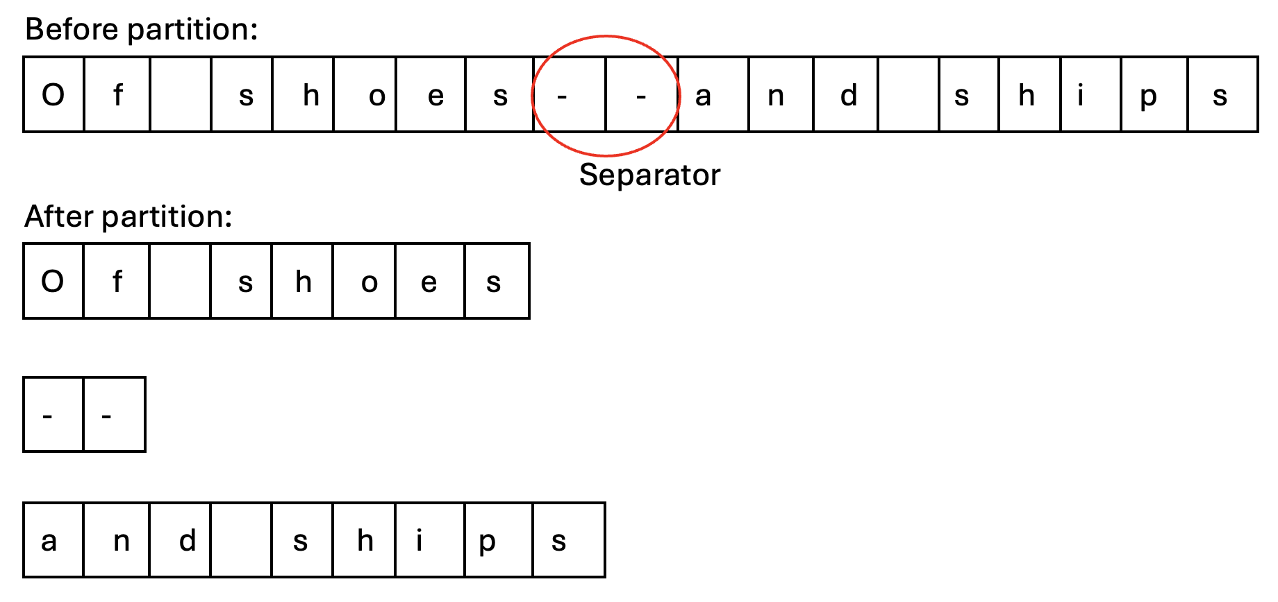| bytearray(b'Of shoes') bytearray(b'--') bytearray(b'and ships--and sealing-wax--') |